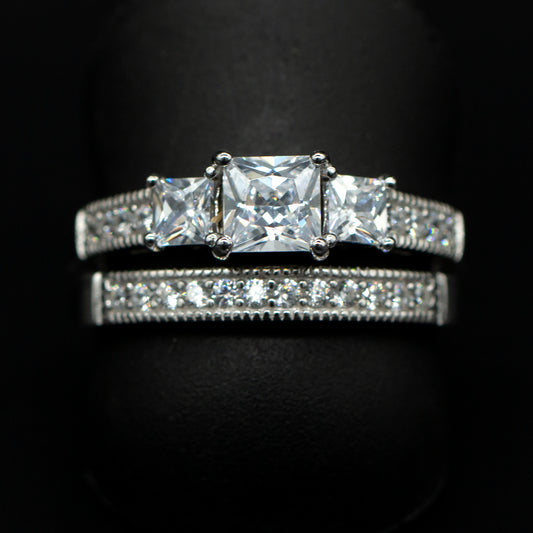 Sterling silver 2pc 2.16ctw Crystal Engagement/Wedding Band Ring Set