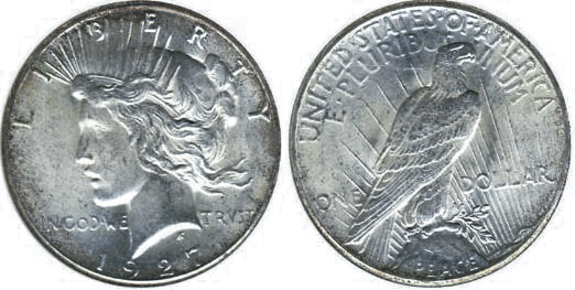 The Peace Silver Dollar was first struck in 1921 to honor world peace, and the last coin was minted in 1935. It's America's last-ever circulating Silver Dollar. The obverse of the coin depicts a finely chiseled portrait of Liberty. The reverse of the coin shows an eagle in repose atop a crag, peering toward the sun through a series of rays, with the word PEACE superimposed on the rock. No other U.S. coin produced for circulation has ever borne that motto. The entire run of Peace dollars consists of just 24 coins. Thus, many collectors strive for complete date-and-mint sets.