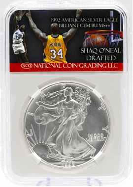 1992 Shaq O'Neal Drafted Gem Mint $1 American Silver Eagle w/ Case