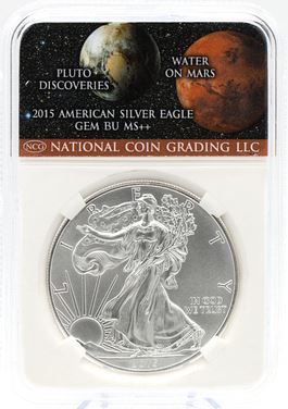 2015 Pluto Discoveries Water on Mars $1 American Silver Eagle GEM