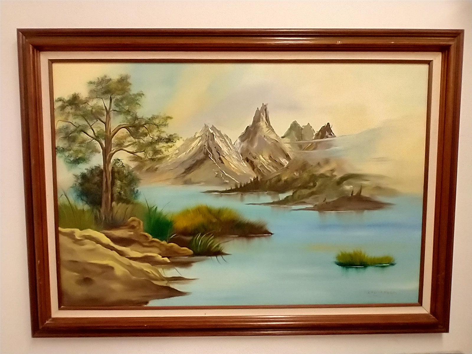 Lakeside Mountain Oil on Canvas, Artist Signed