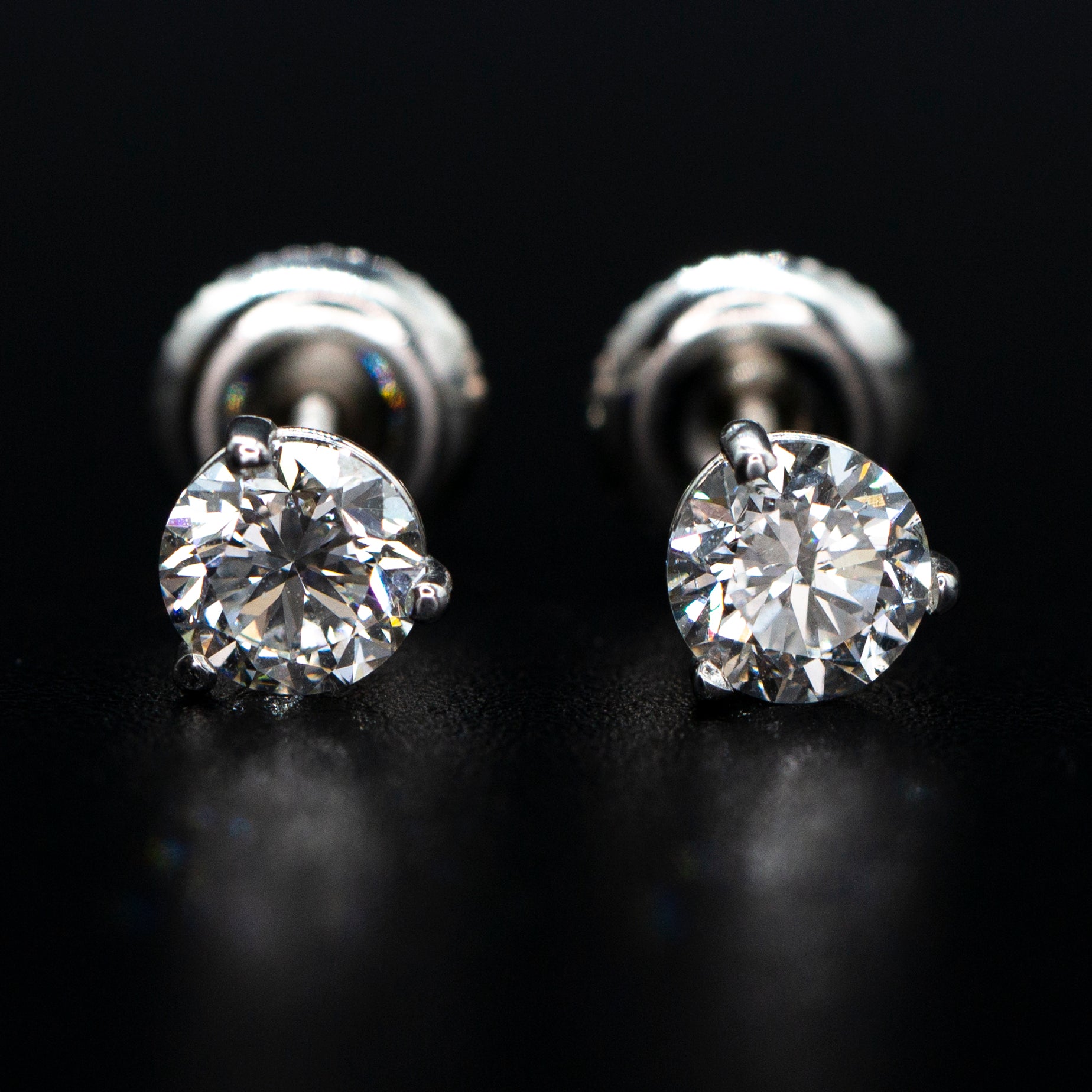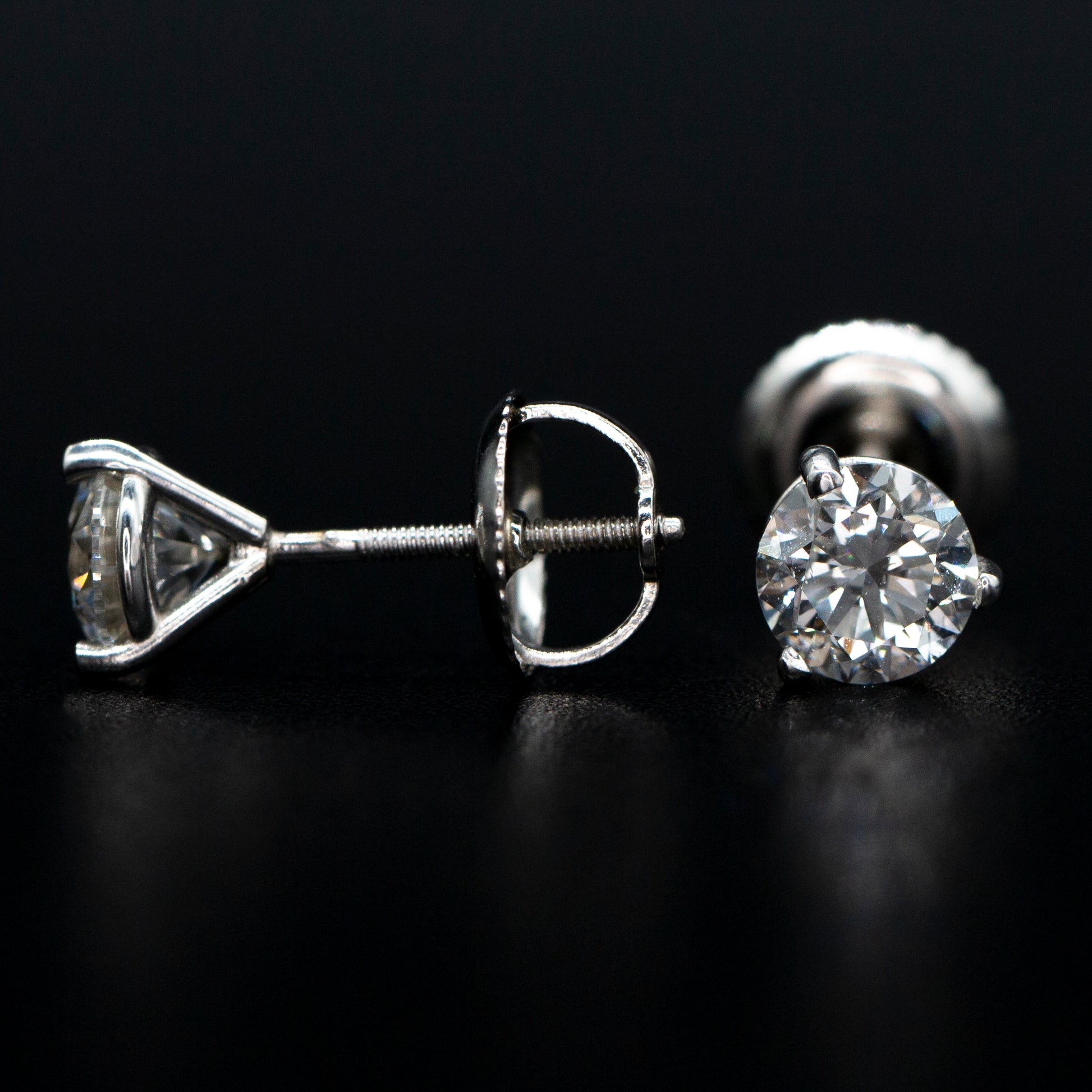 14KW .96ct Round LG VS F-G Diamond Martini Solitaire Studs