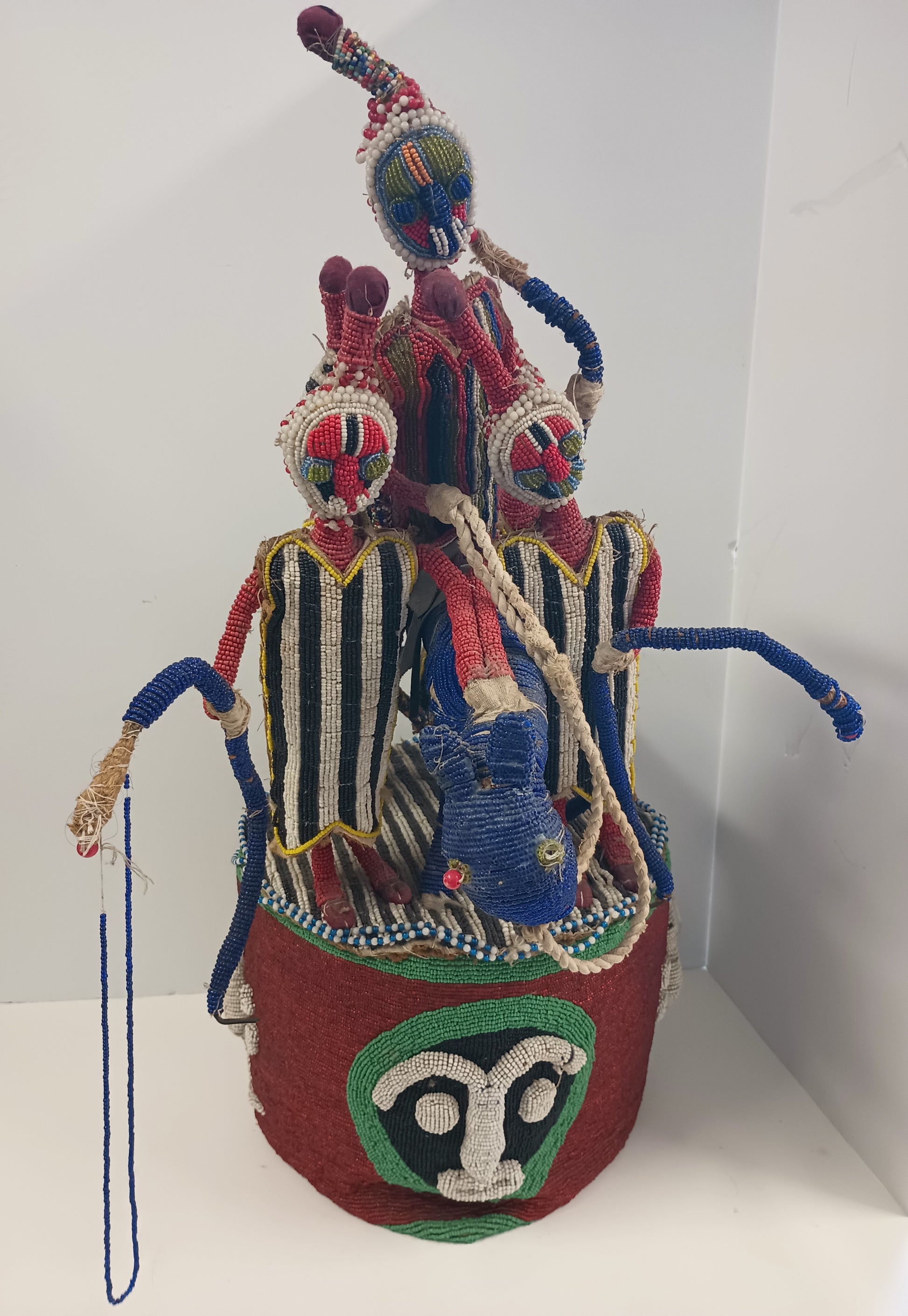 19th C. Yoruba Tribe Beaded King w/ Bodyguards Tribal Crown