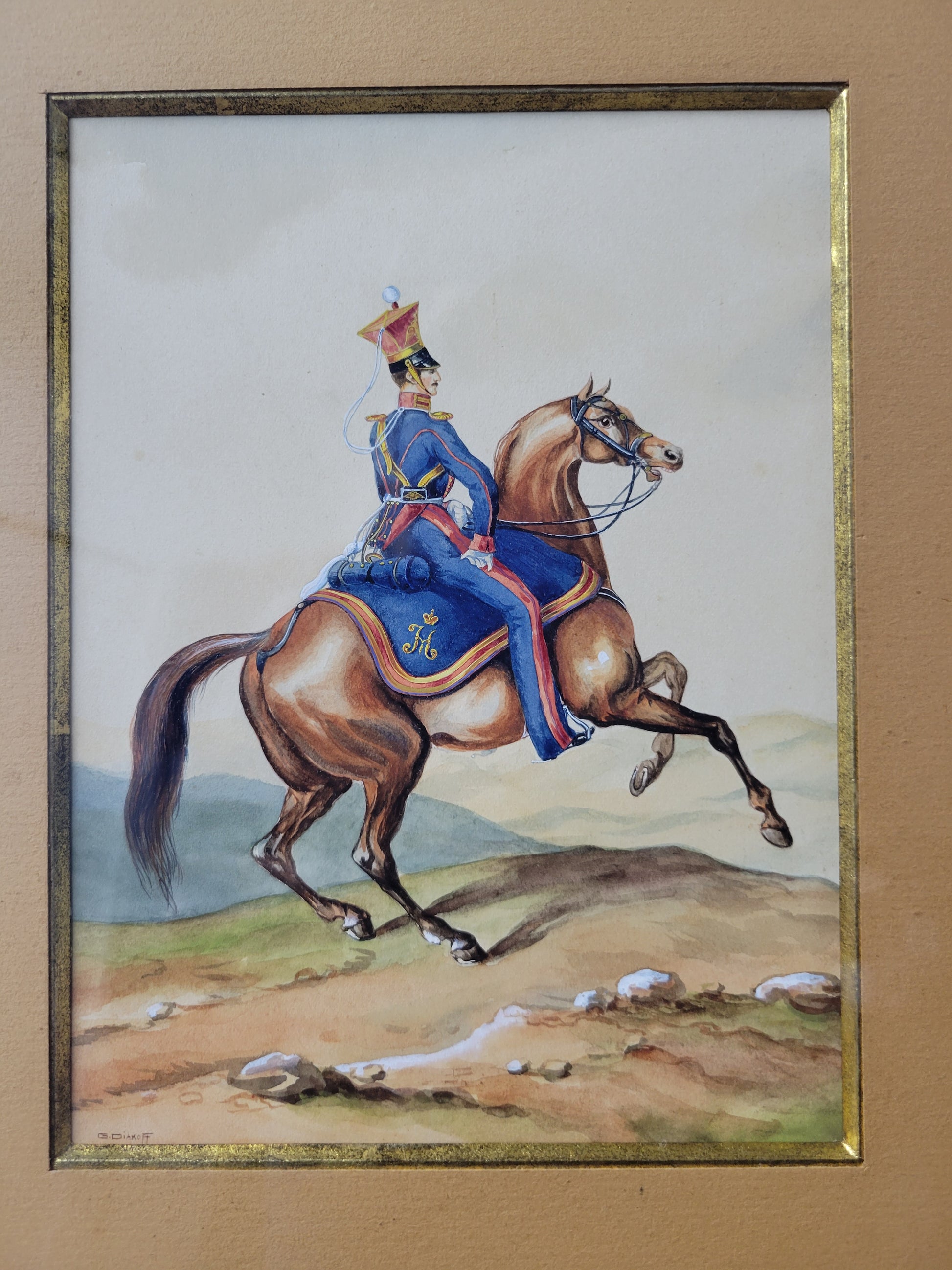 Emperor Nicholas II on Horseback WC Painting signed G. Diakoff