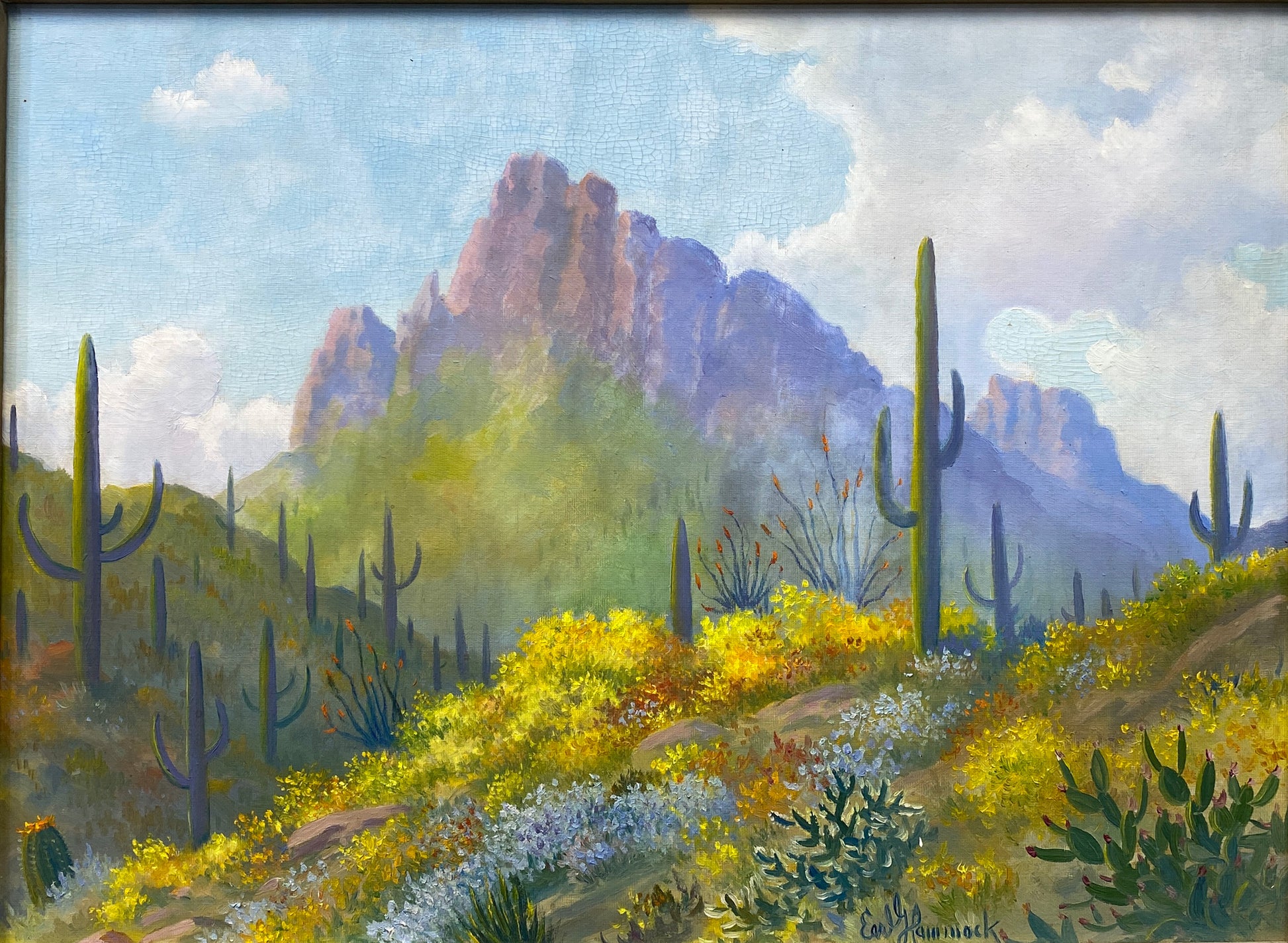 Cacti of Wickenburg signed Earl G. Hammock Oil on Masonite