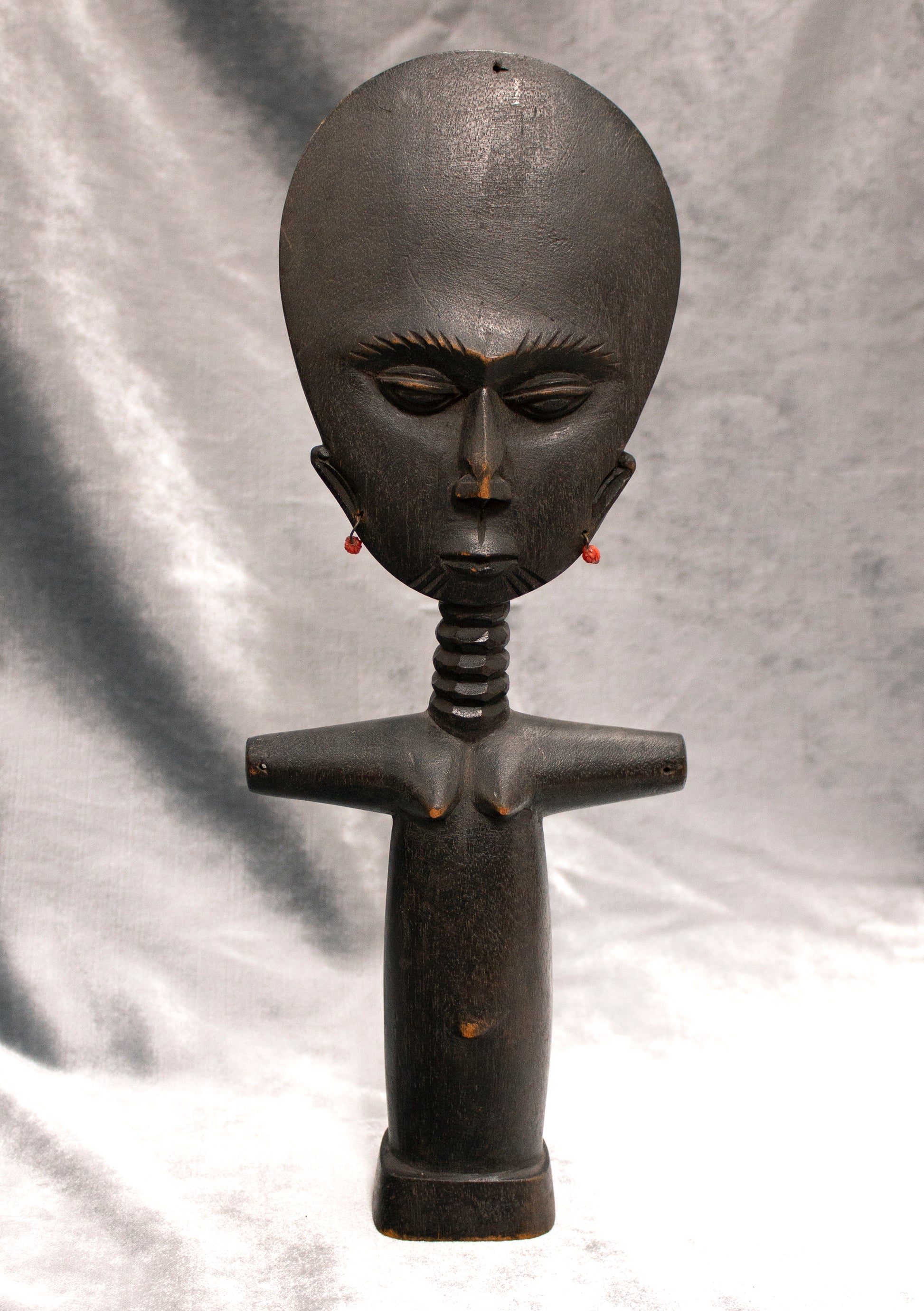 The appearance of the Asante akua'ba is as distinctive as the story about it. Typically it features a disc-shaped head with