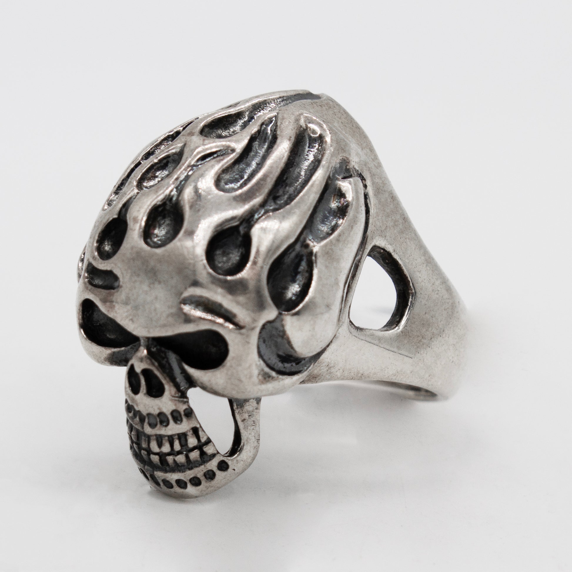 Sterling Silver 32.1g Flaming Skull Ring