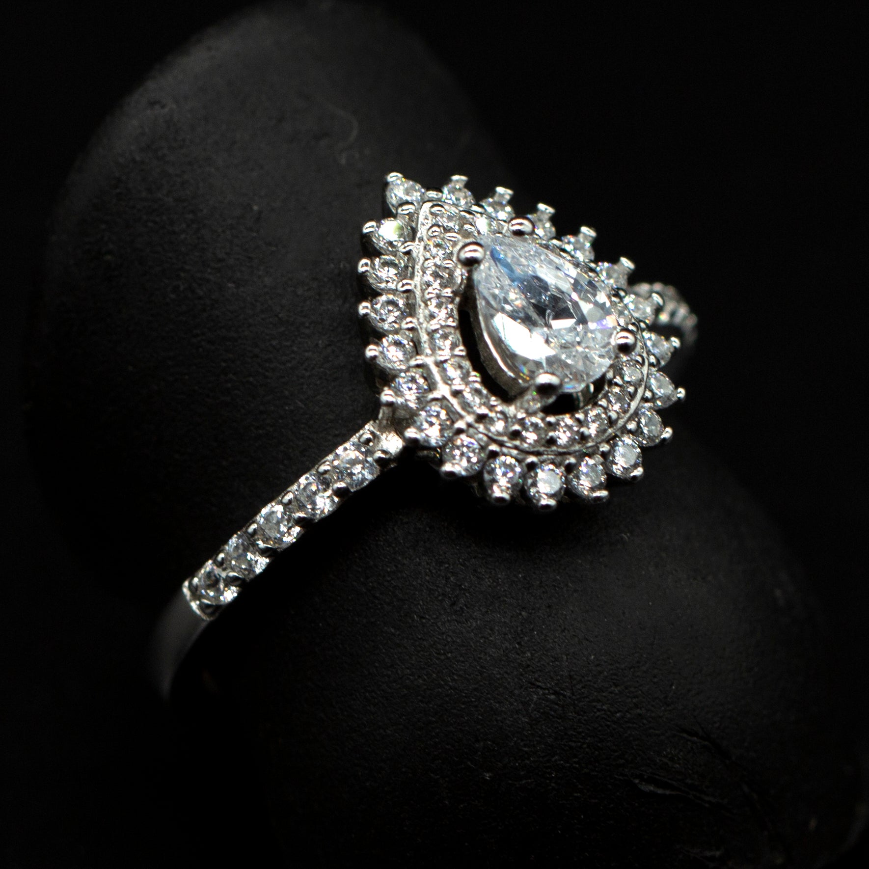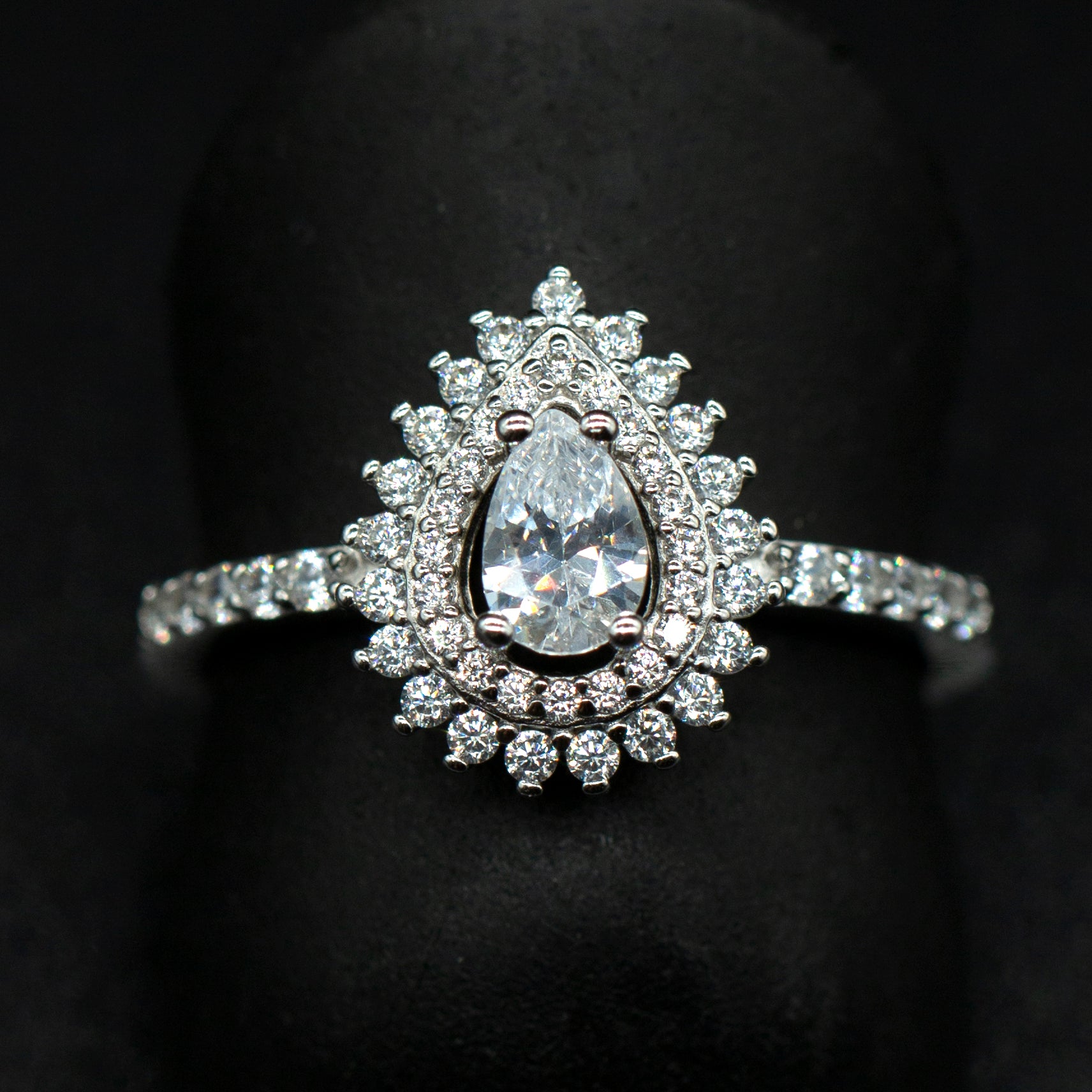 Sterling silver 1.40ctw Crystal Pear Halo Engagement Ring