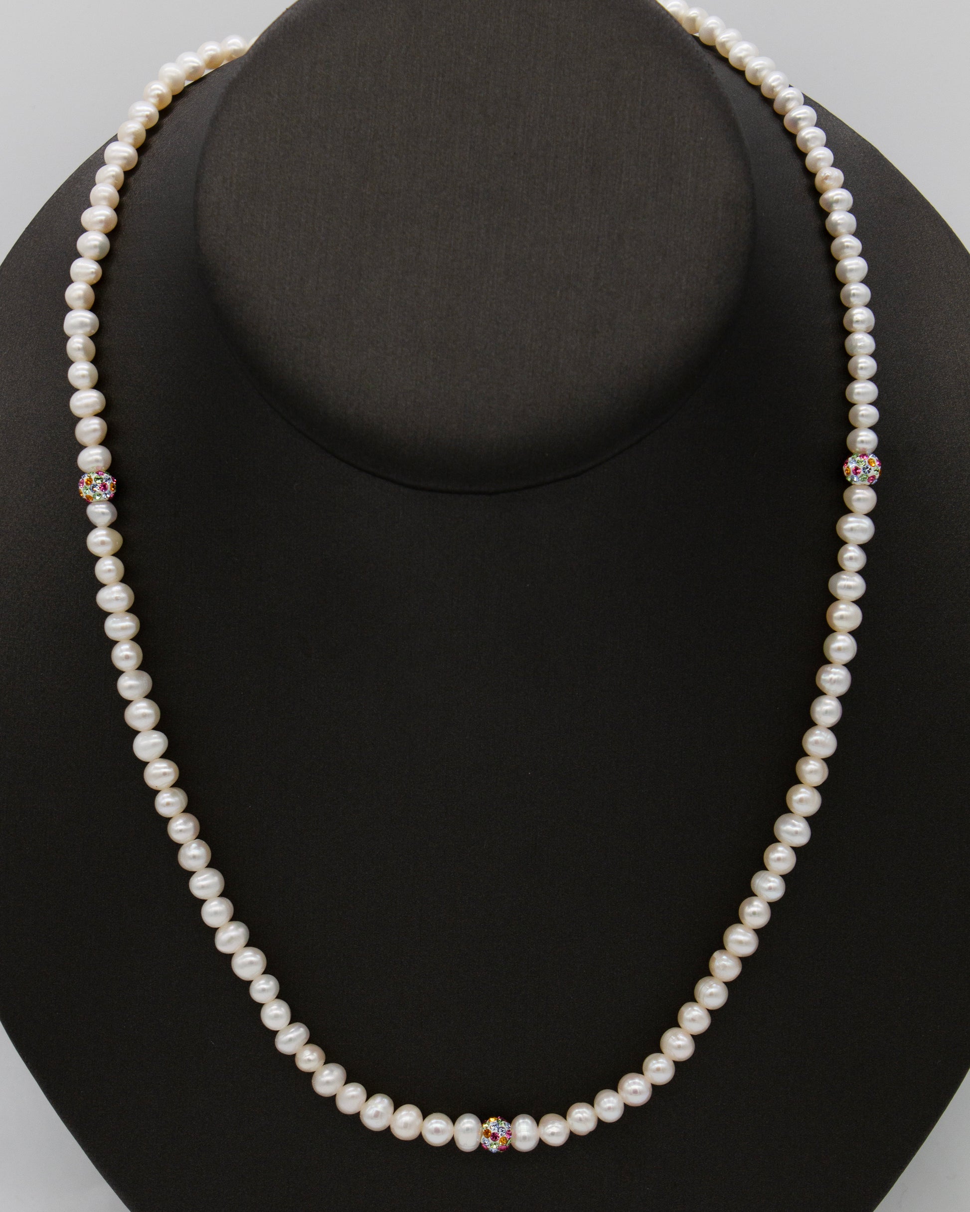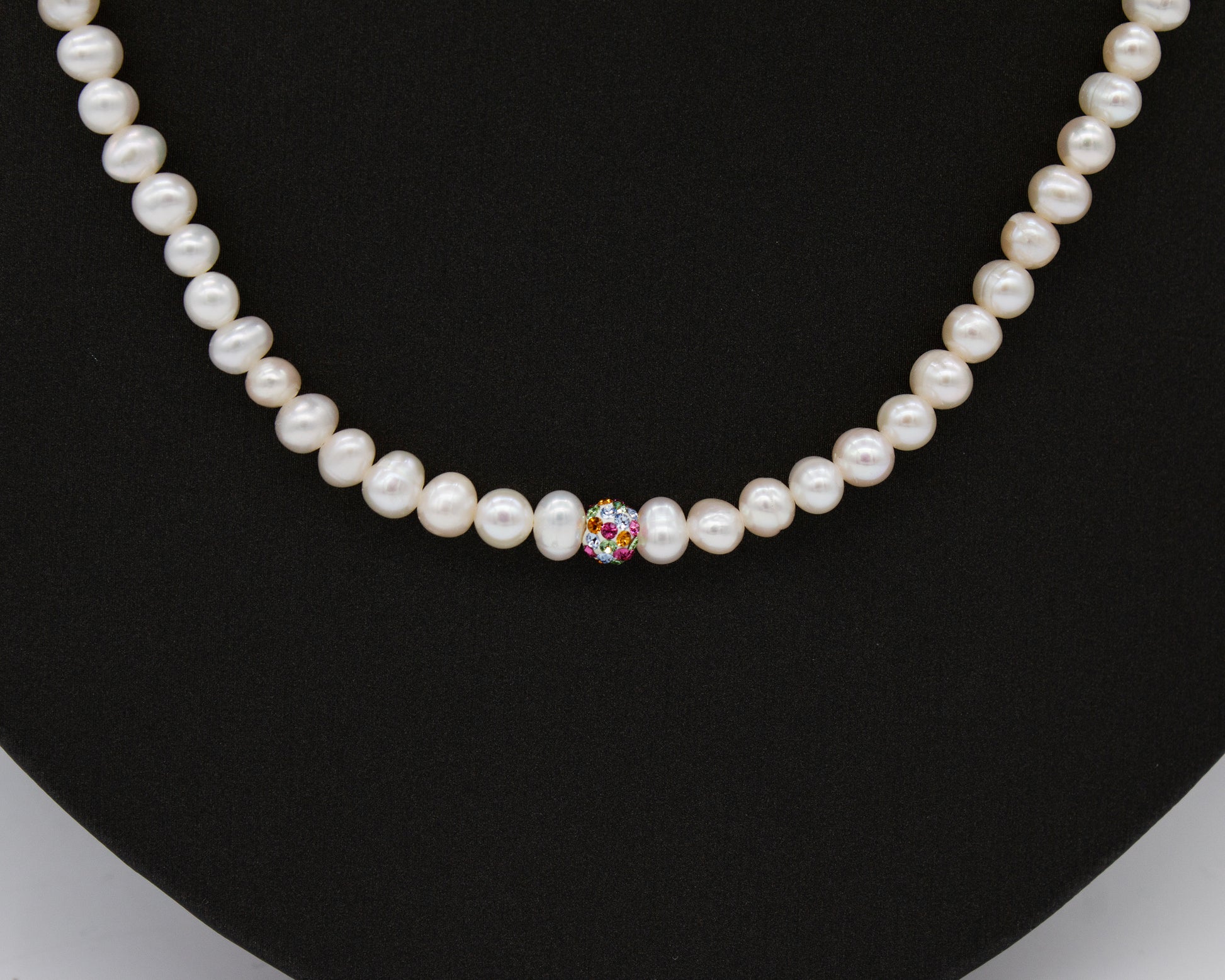 14K Yellow Gold 18inch Freshwater Pearl/Crystal Necklace