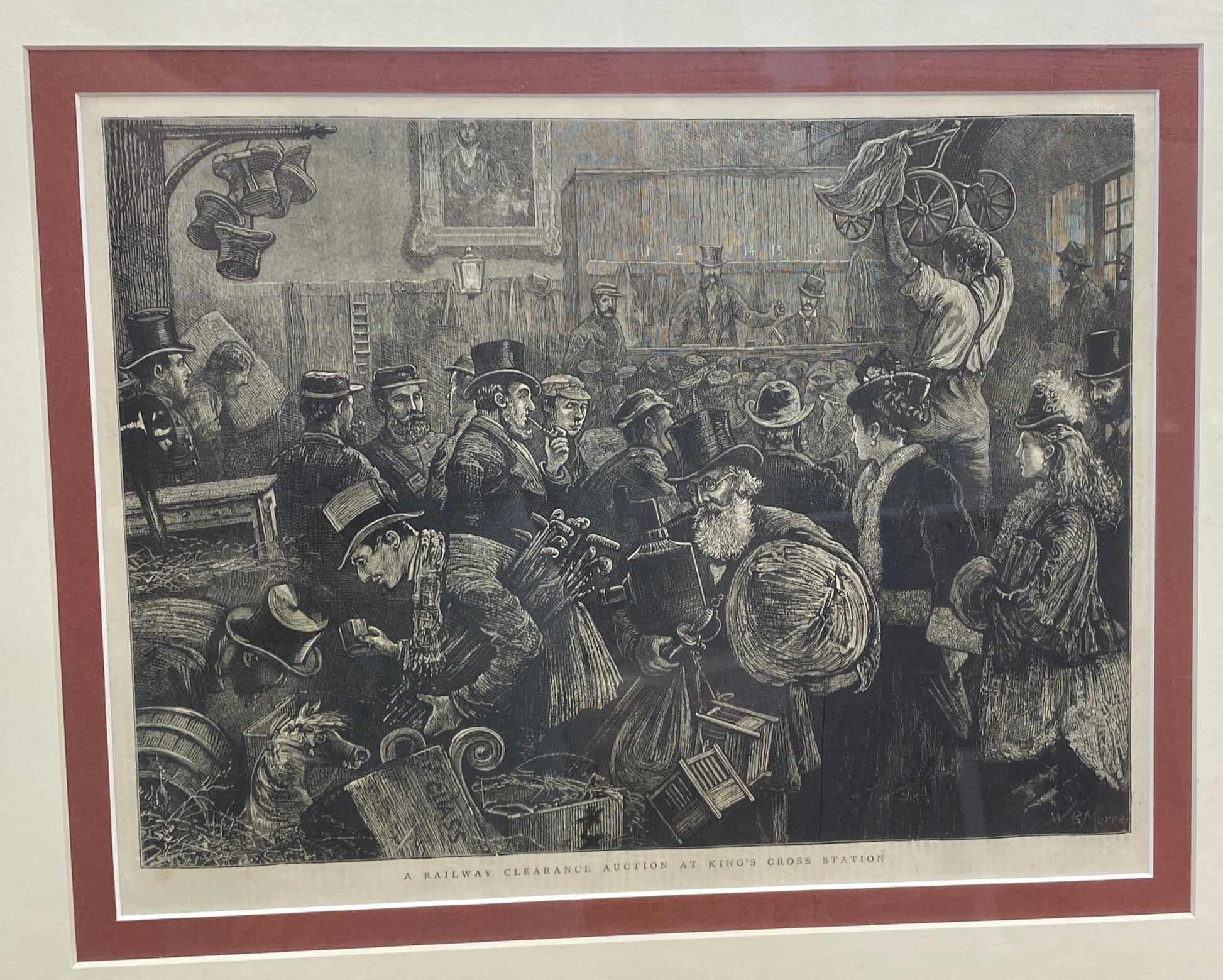 1875 The Railway Clearance Auction at Kings Cross Station Etching