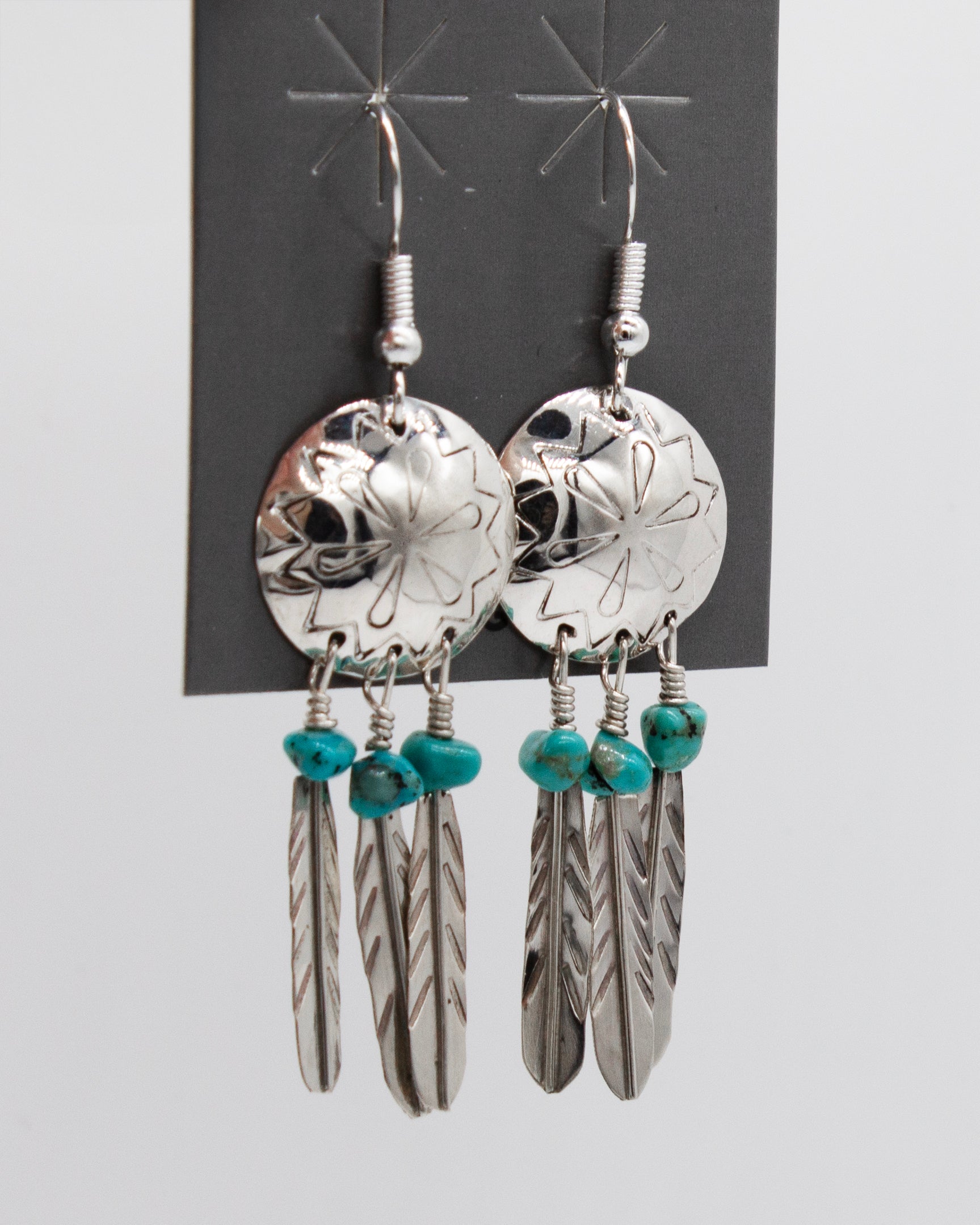 Vintage Ssilver Zuni Turquoise Feather Dangle Earrings