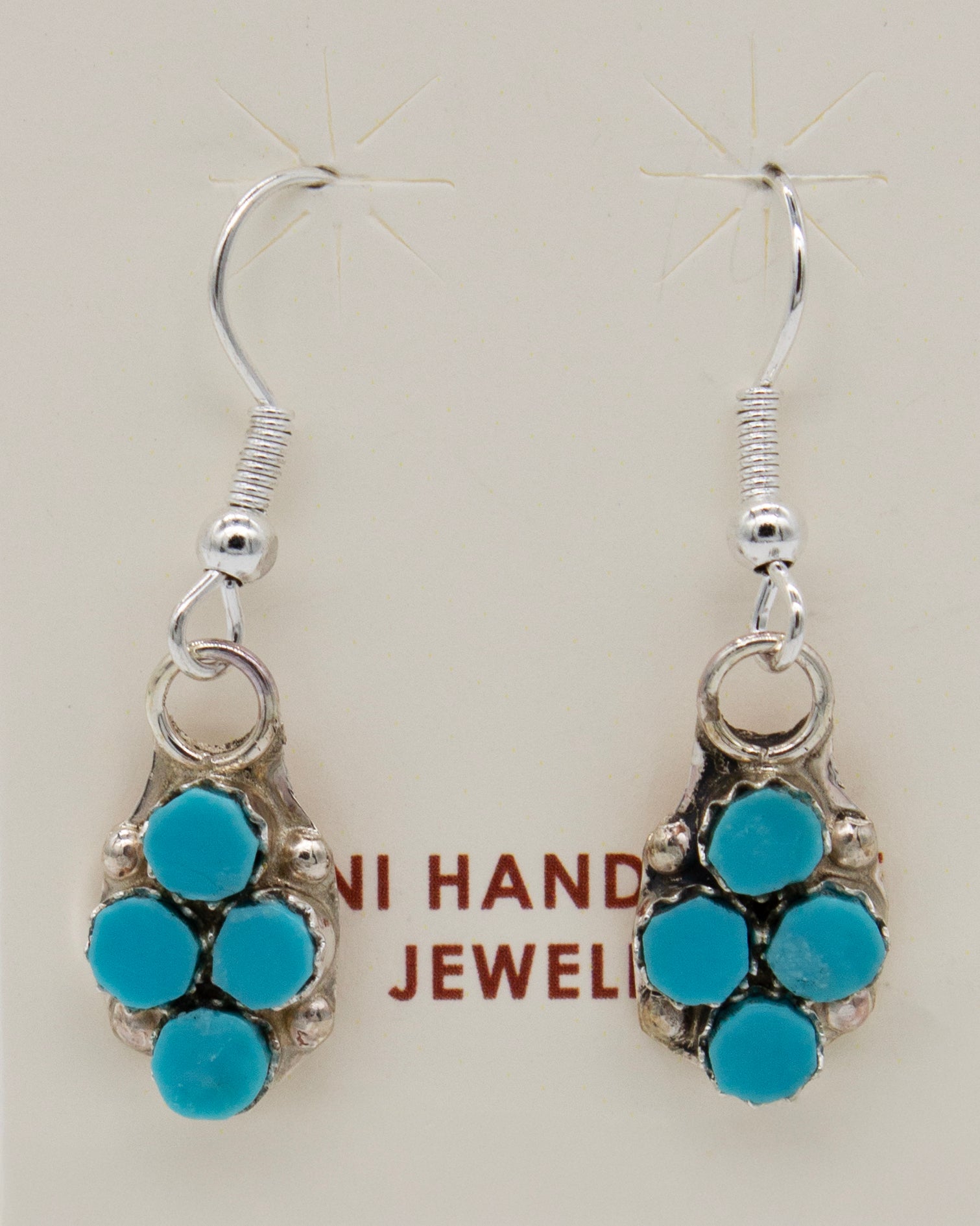 Vintage Ssilver Zuni Turquoise Cluster Dangle Earrings