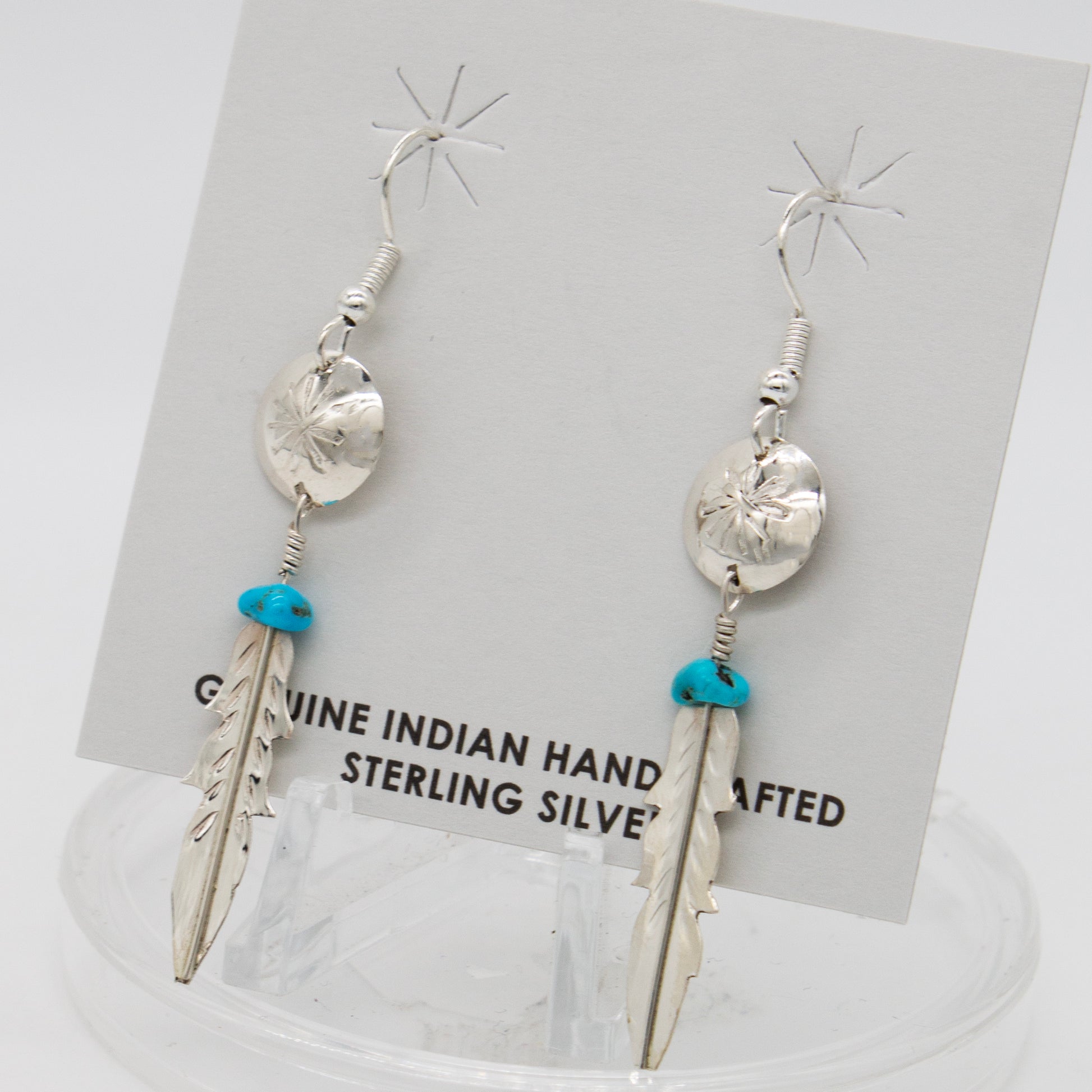 Ssilver Zuni Turquoise Feather Dangle Earrings
