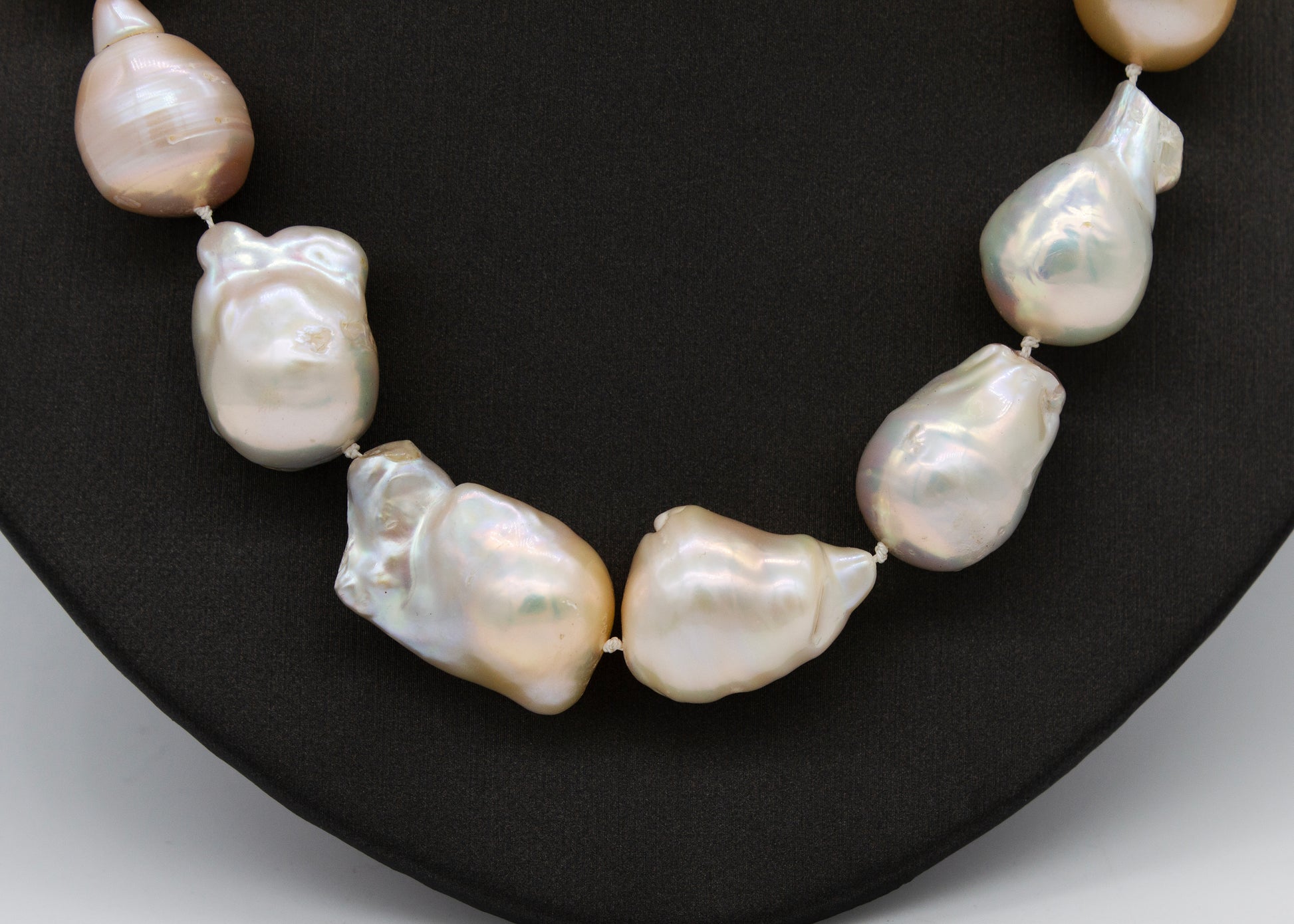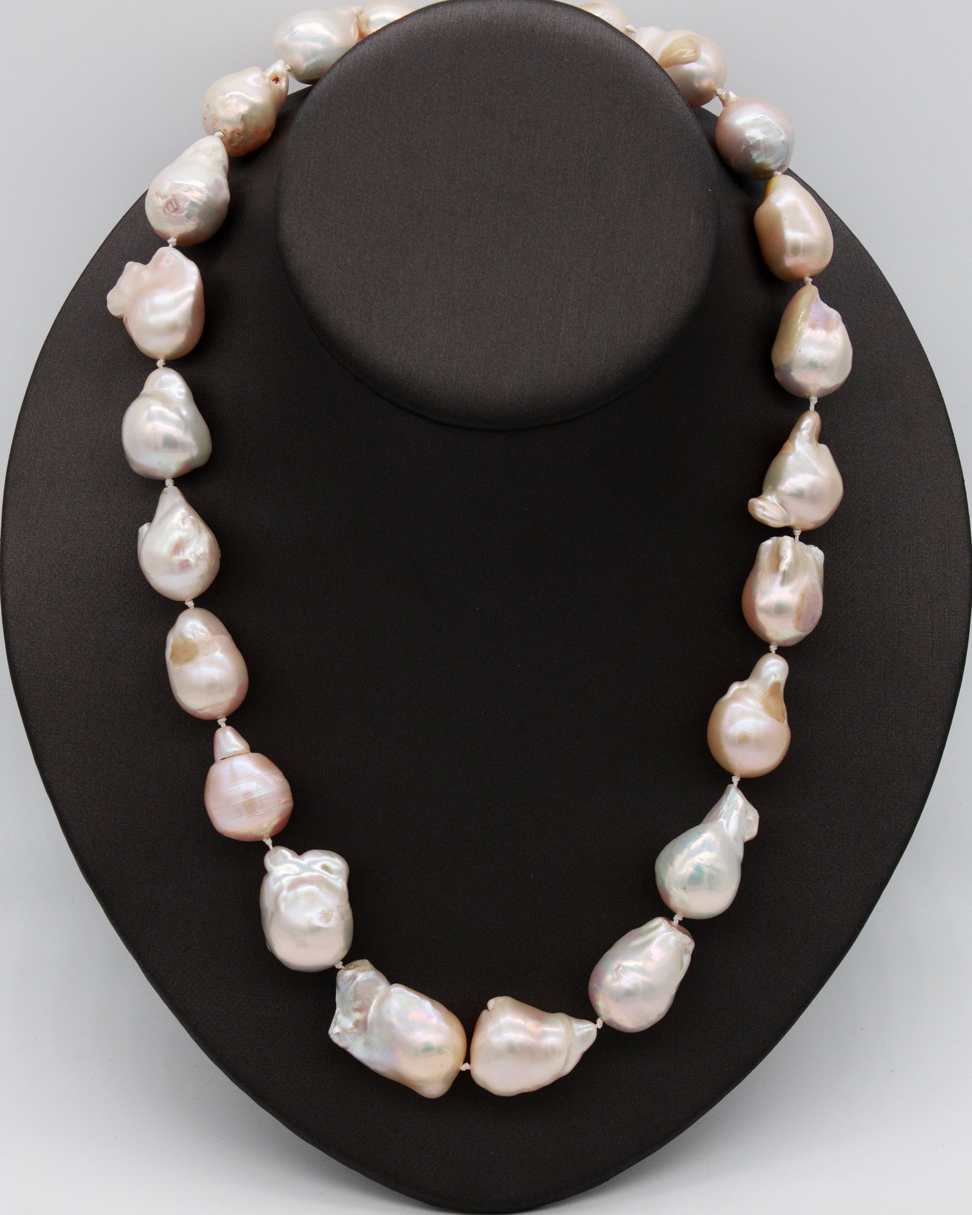 Baroque Freshwater refers to baroque pearls that are cultured in freshwater environments. Baroque pearls are irregularly shaped, meaning they don’t have the traditional round form. Instead, they can be elongated, teardrop-shaped, or asymmetrical, making each one unique.