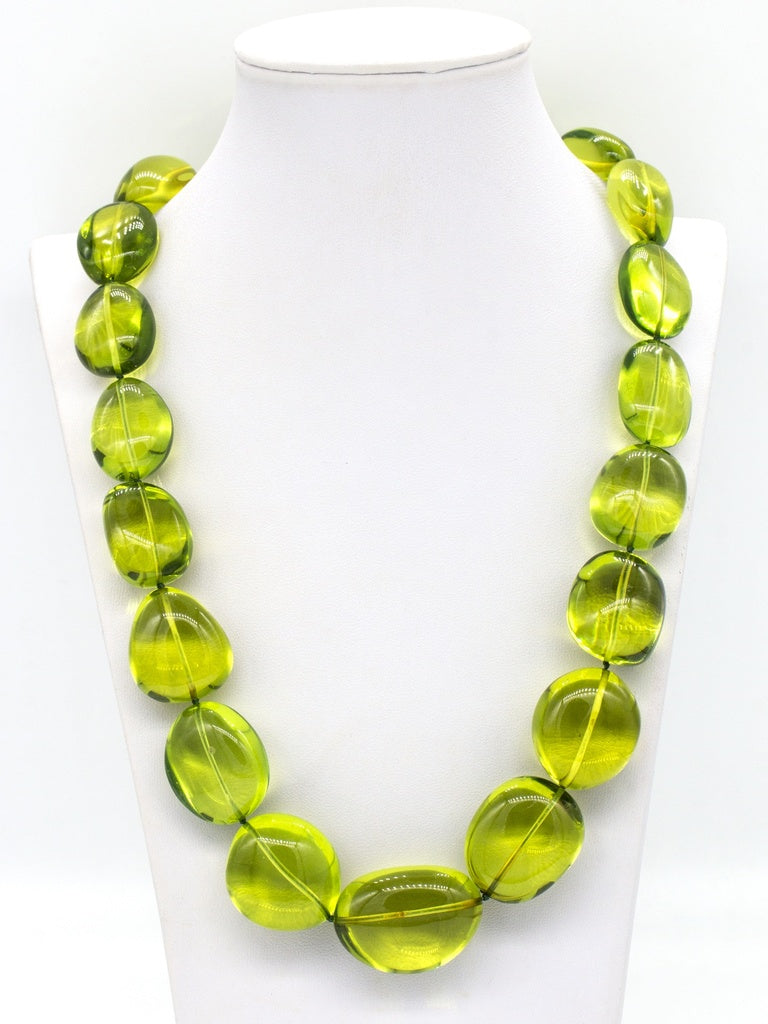 Handmade Massive Olive Bead Green Baltic Amber Opera Length Necklace
